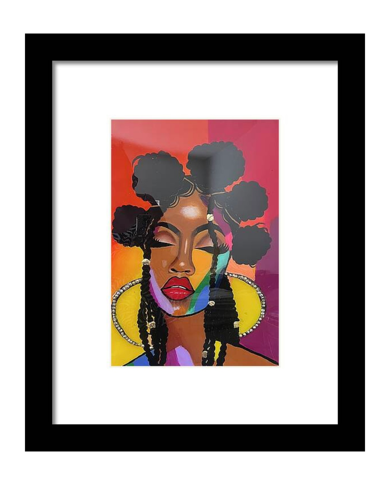 Vibrant Thang is a dazzling tribute to self-expression and cultural pride. From the bold bantu knots and flowing braids to the kaleidoscope of colors painting her face, this striking portrait by J Allison commands attention and radiates confidence.
